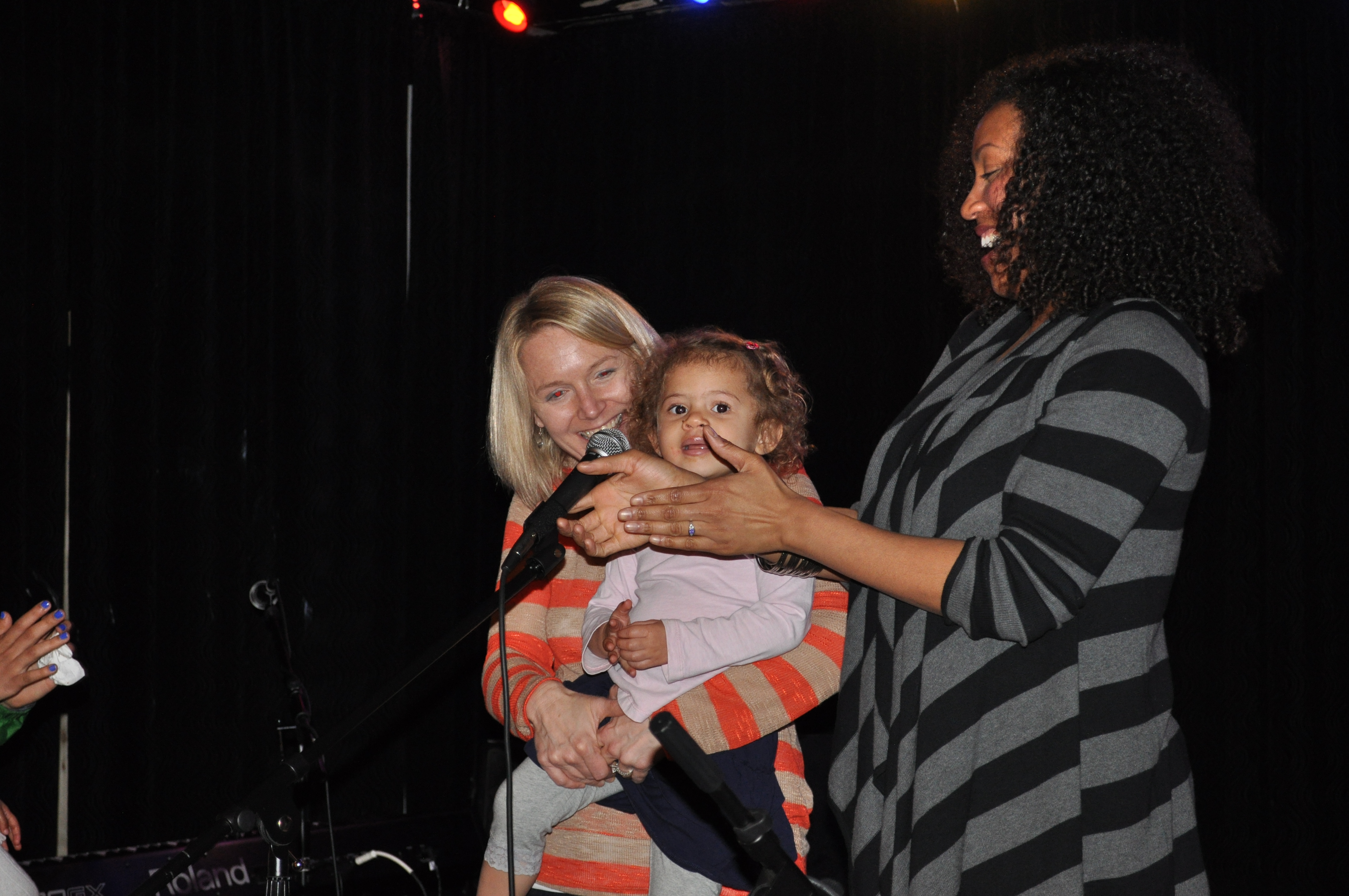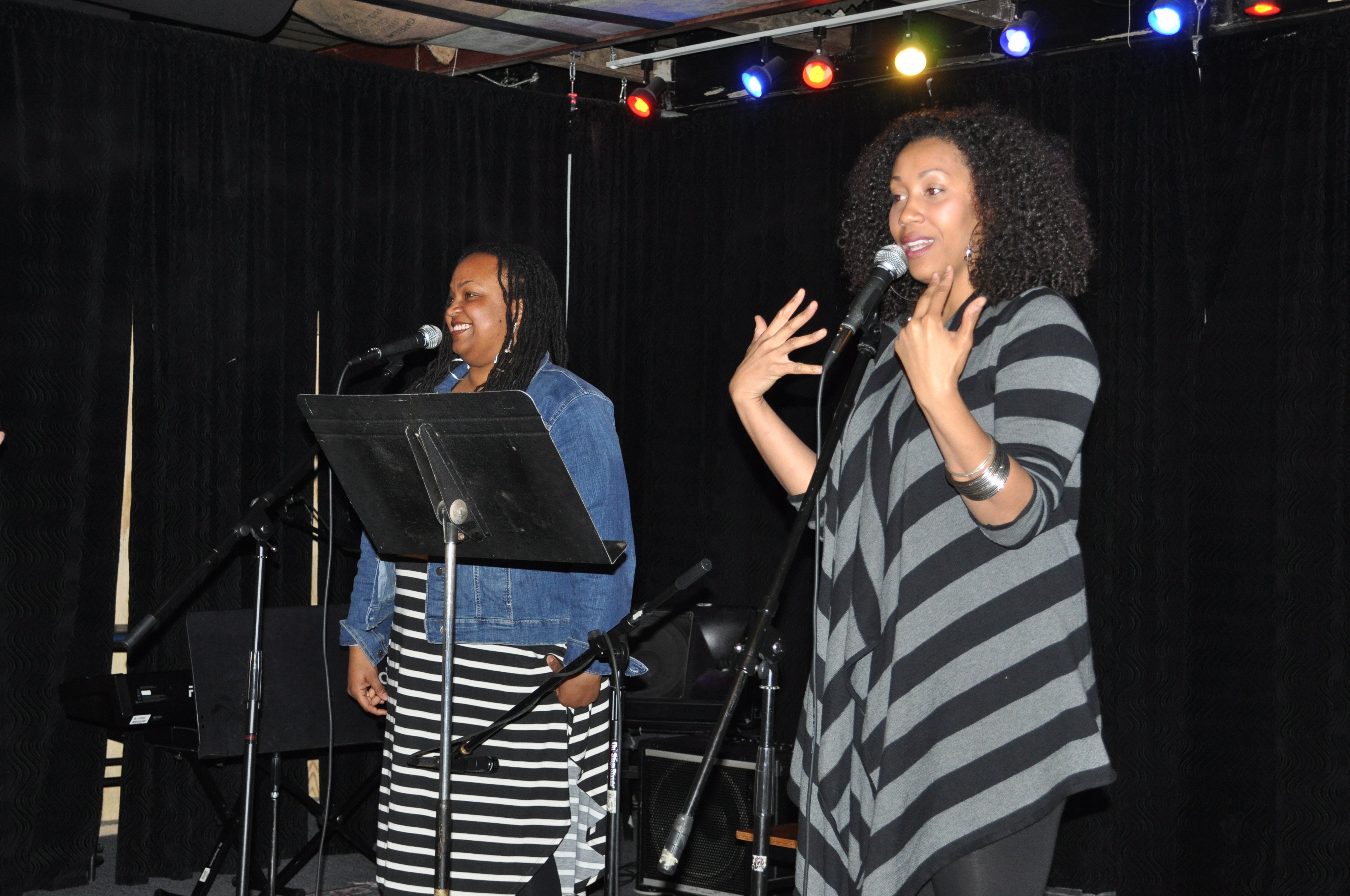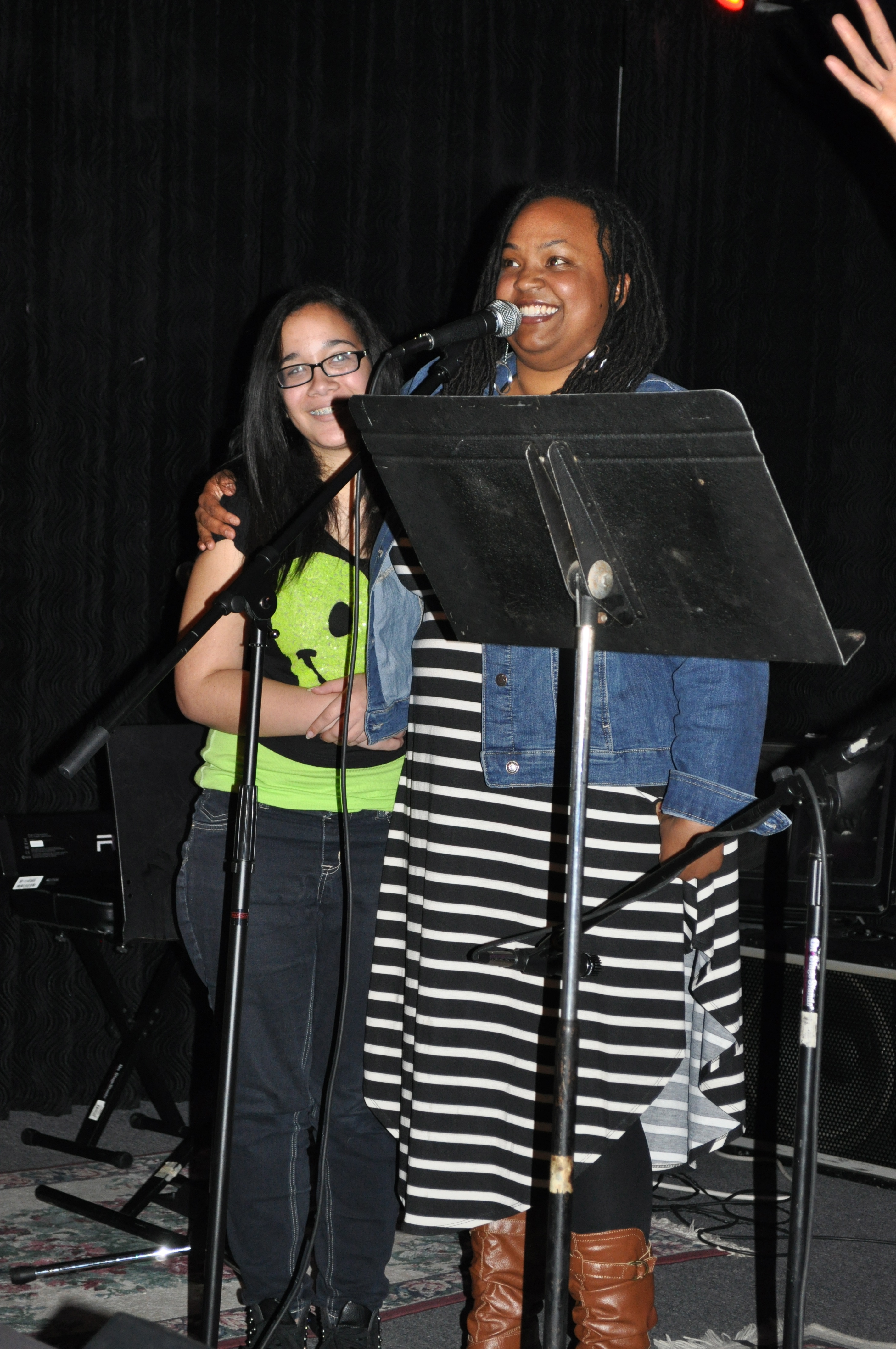 Co-founder Kim Arrington and singer McKenzie sharing a moment on stage before McKenzie’s performance.